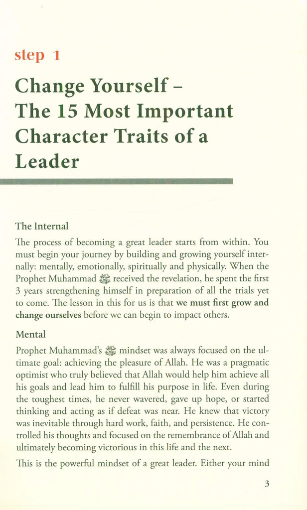 In this book, readers will go on a journey through Prophetic leadership. To know what leadership truly entails, the blessed example of the Prophet Muhammad ﷺ, the Greatest Leader of All Time, will be studied, clarified, and distilled by the authors via the following 3-step leadership framework: